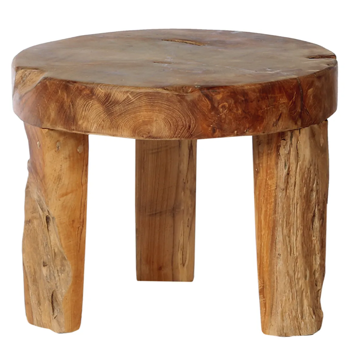Beistelltisch Erosi Teak, unregelmäßiger rustikaler Teakholztisch auf 3 Beinen, WMG Grünberger