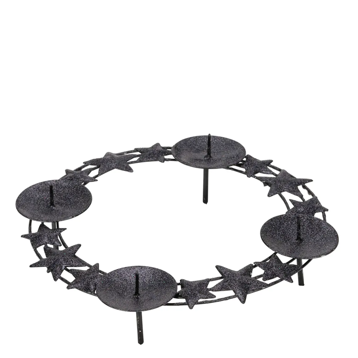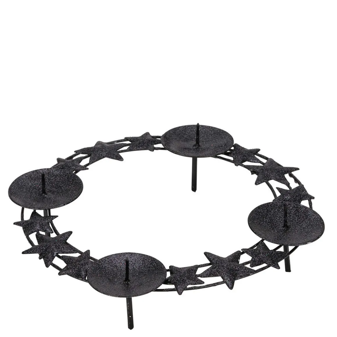 Deko Adventskranz Sterne, Metallkranz mit Sterne schwarz, Kranz zum Auflegen, Ø24cm