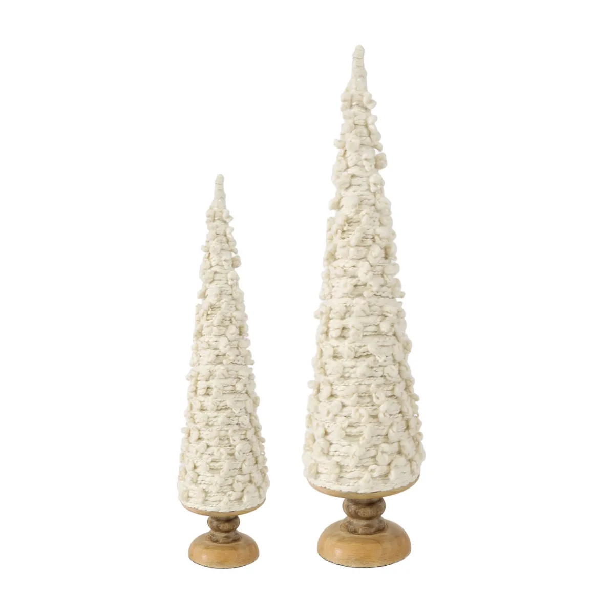 Ein schlanker, edler Deko Baum, der mit seiner noppigen Wollstruktur sofort eine warme, winterliche Stimmung verbreitet.