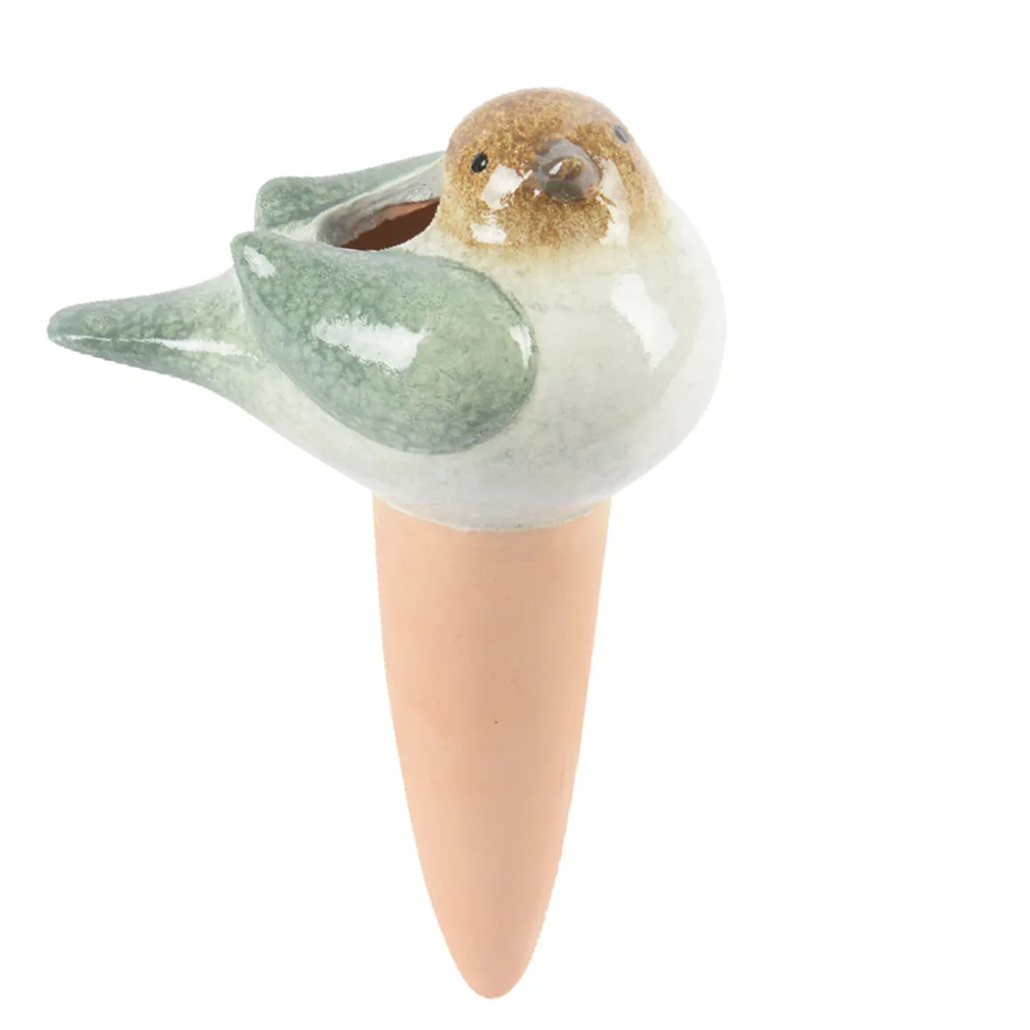 Deko Bewässerungsvogel braun-grün, Keramikvogel für Pflanzenbewässerung,15cm
