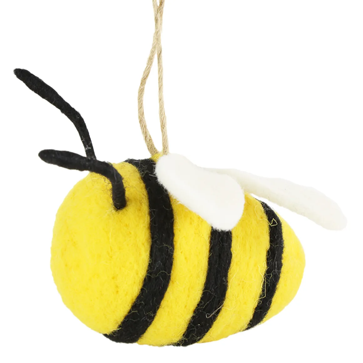 Deko Biene aus Filz zum Hängen, Filzbiene gelb-schwarz, 8x9cm