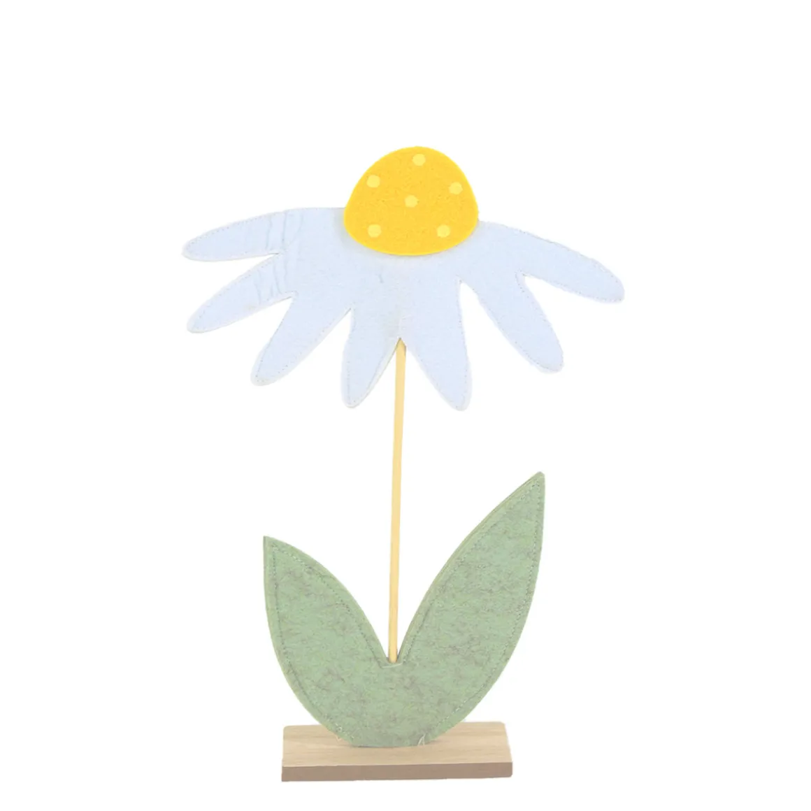 Deko Blume Margarite, Filzblume gelb-weiß auf Holzsockel, 27cm