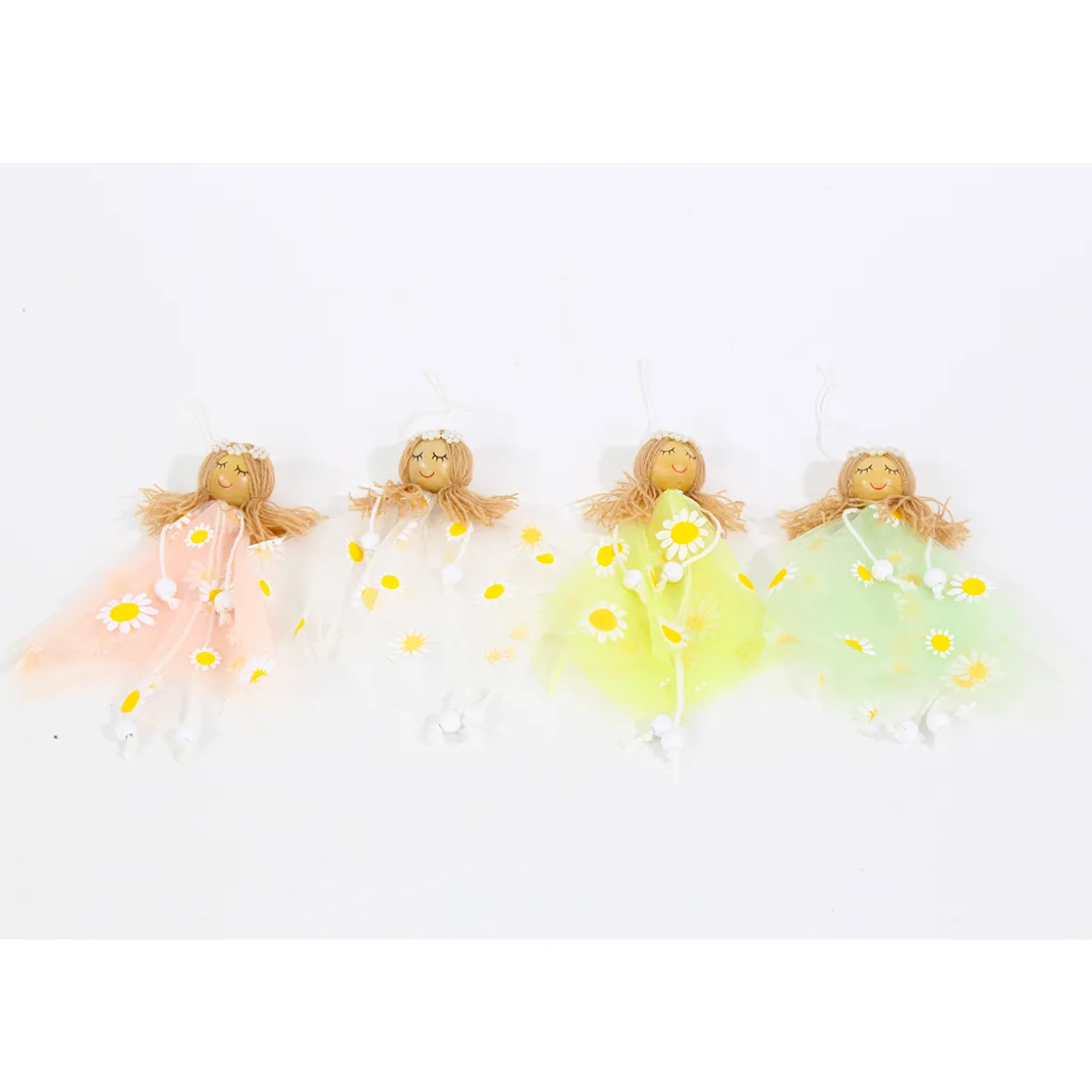 Deko Blumenmädchen, Blumenfee mit Blumenkleid gelb, 20cm, Hänger