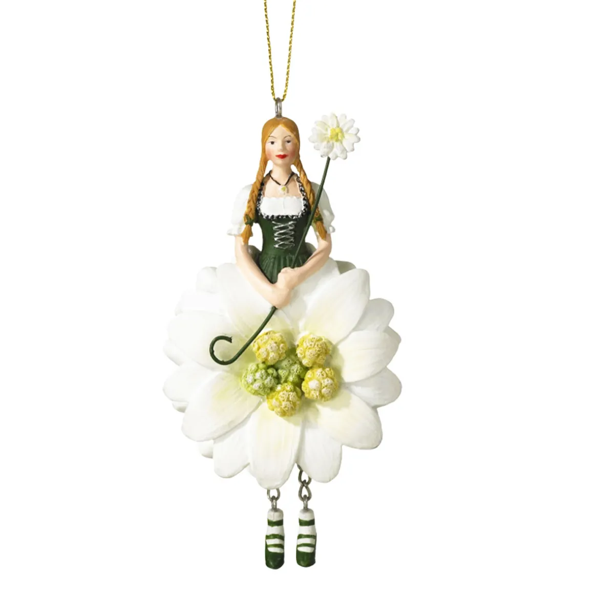 Deko Blumenmädchen, Edelweißmädchen, weiß-grün, 11cm, Hänger, Fiebiger Floristik
