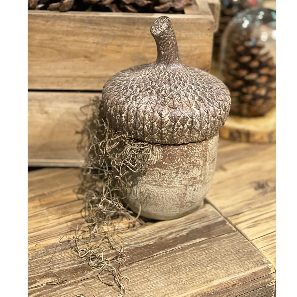 Deko Eichel in Holzoptik, Eichelgefäß mit abnehmbaren Deckel, Vorratsdose, 22cm