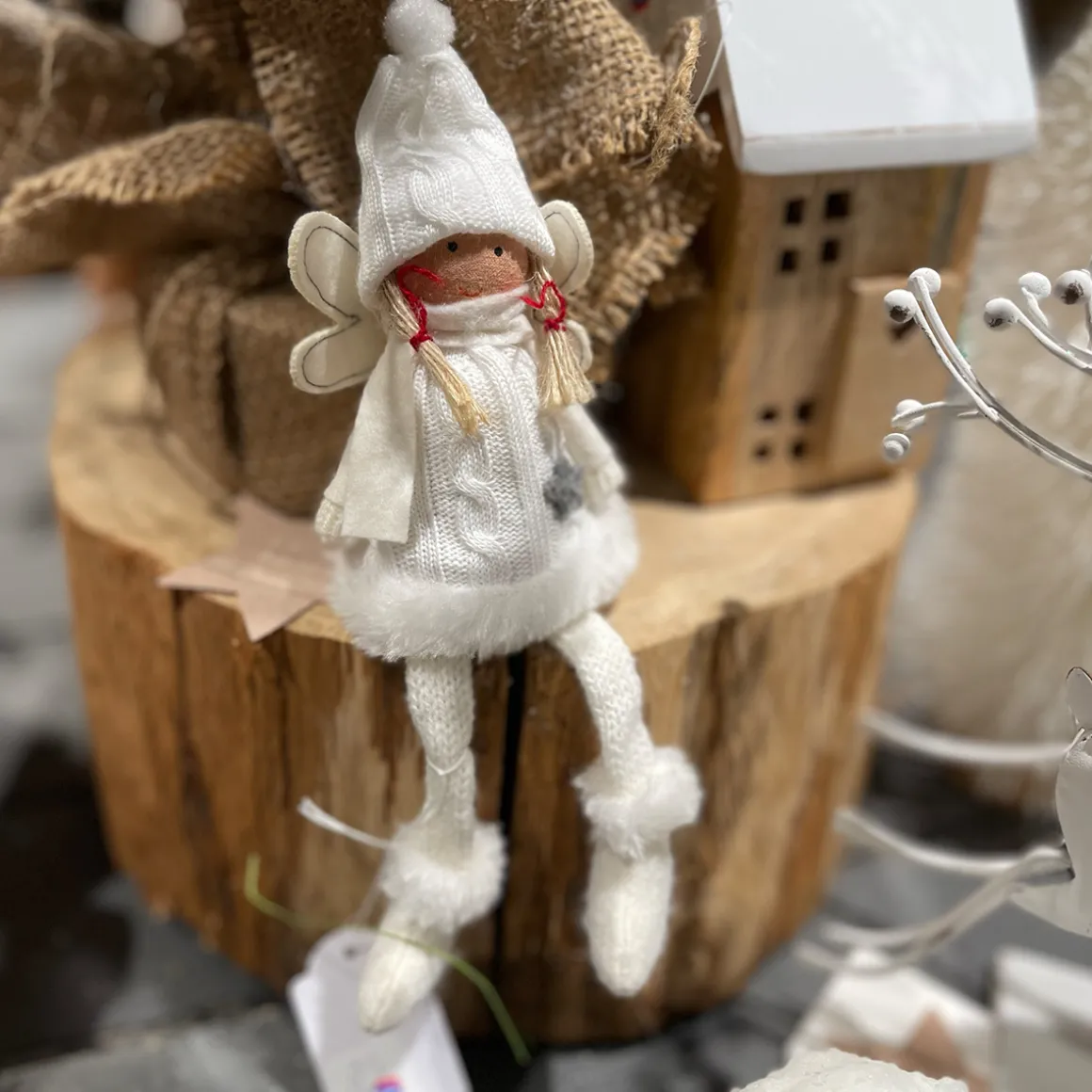 Dieses liebevoll gestaltete Engelpüppchen in Weiß bringt winterlichen Zauber und sanfte Eleganz in die Weihnachtsdekoration.
