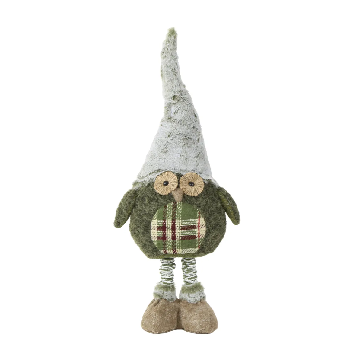 Produktinformationen „Deko Eule mit Teleskopbeine und Plüschmütze, ausziehbar 50-70cm, grün“