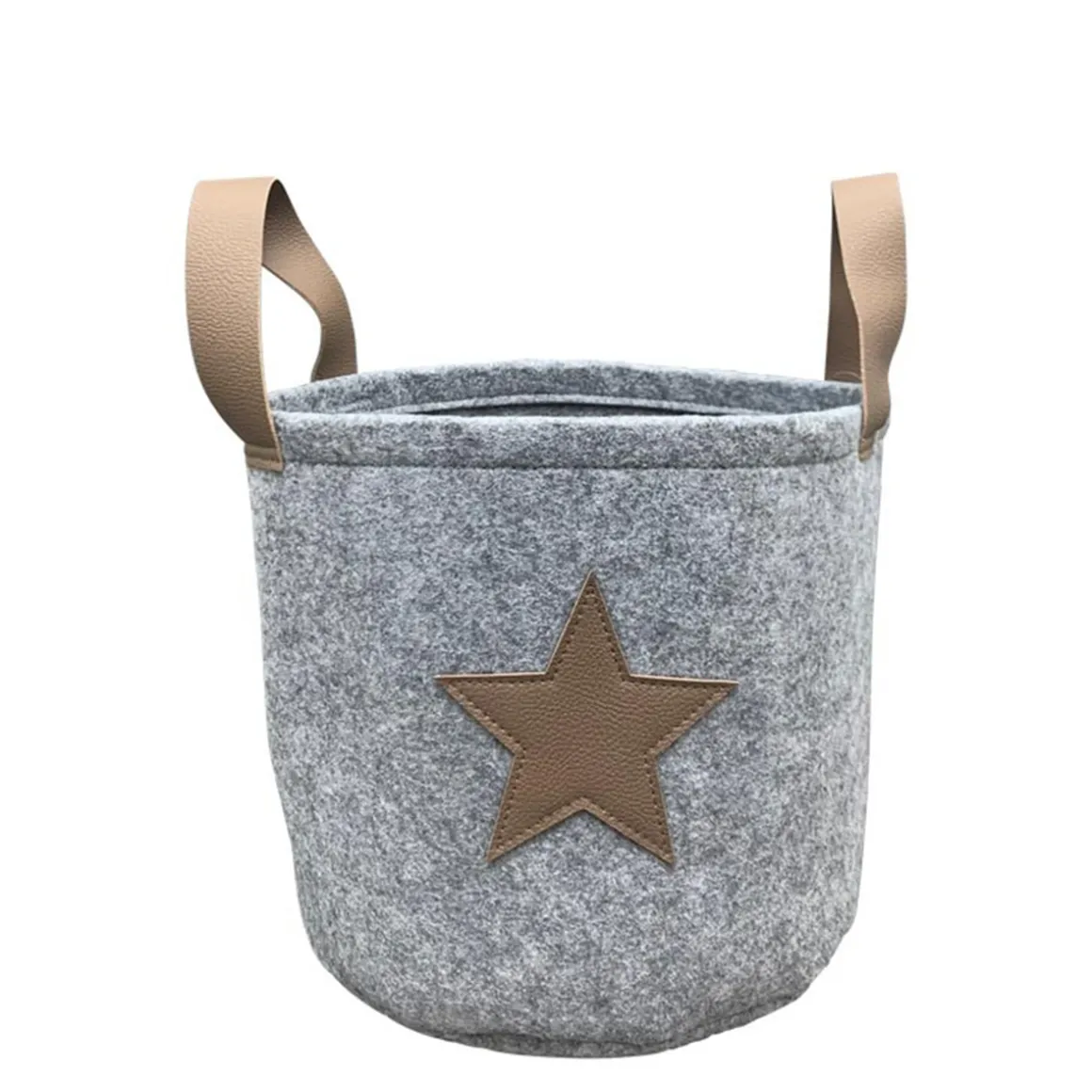 Deko Filzkorb Weihnachten mit Griffen, Übertopf aus Naturfilz mit Lederimitat Stern, 25x25cm