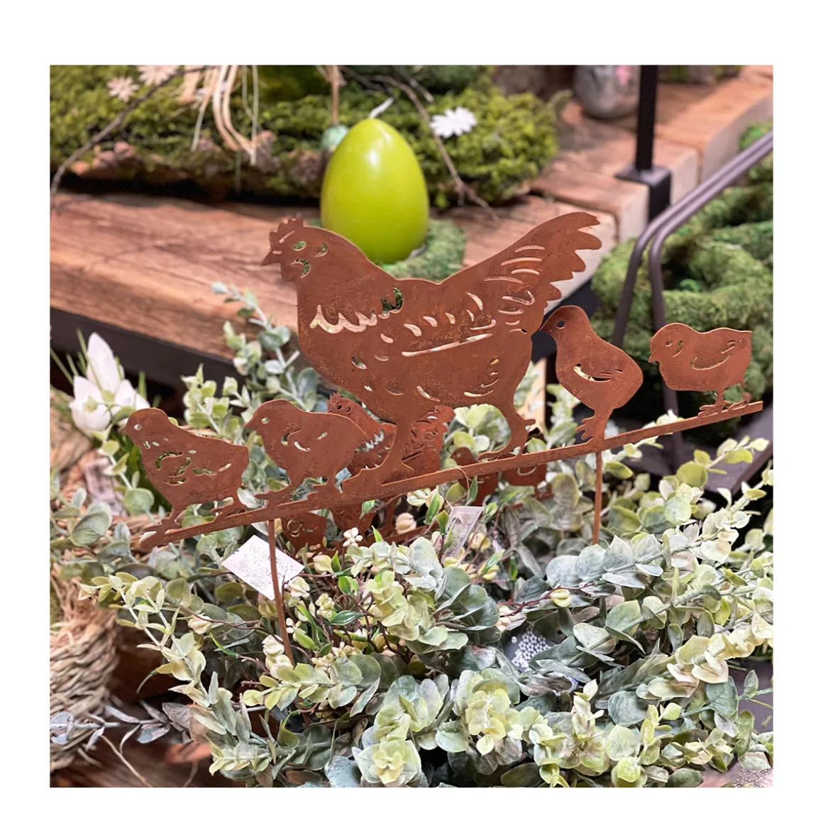 Produktinformationen „Deko Gartenstecker Henne, Henne mit Kücken, 20cm, Rost“