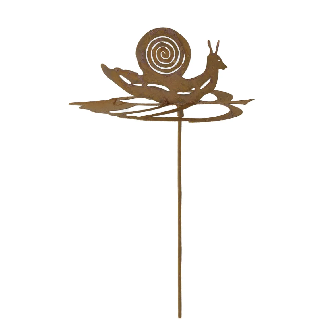 Deko Gartenstecker Schnecke, Rostschnecke auf Blatt, 10x70cm, Edelrost