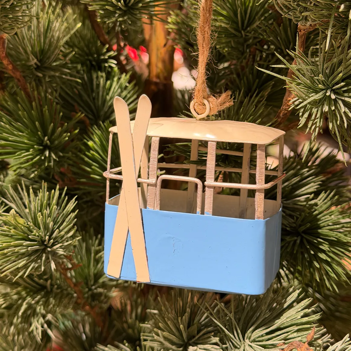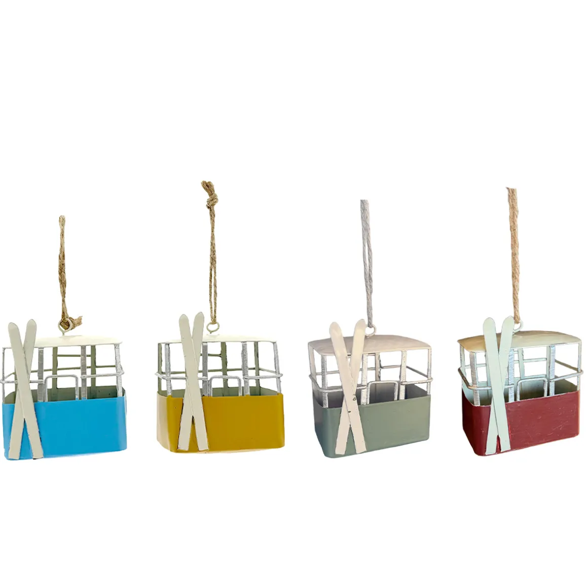 Produktinformationen „Deko Gondel mit Ski, kleine Seilbahn, rot, grün, blau oder gelb, Skigondel aus Metall, Hänger“