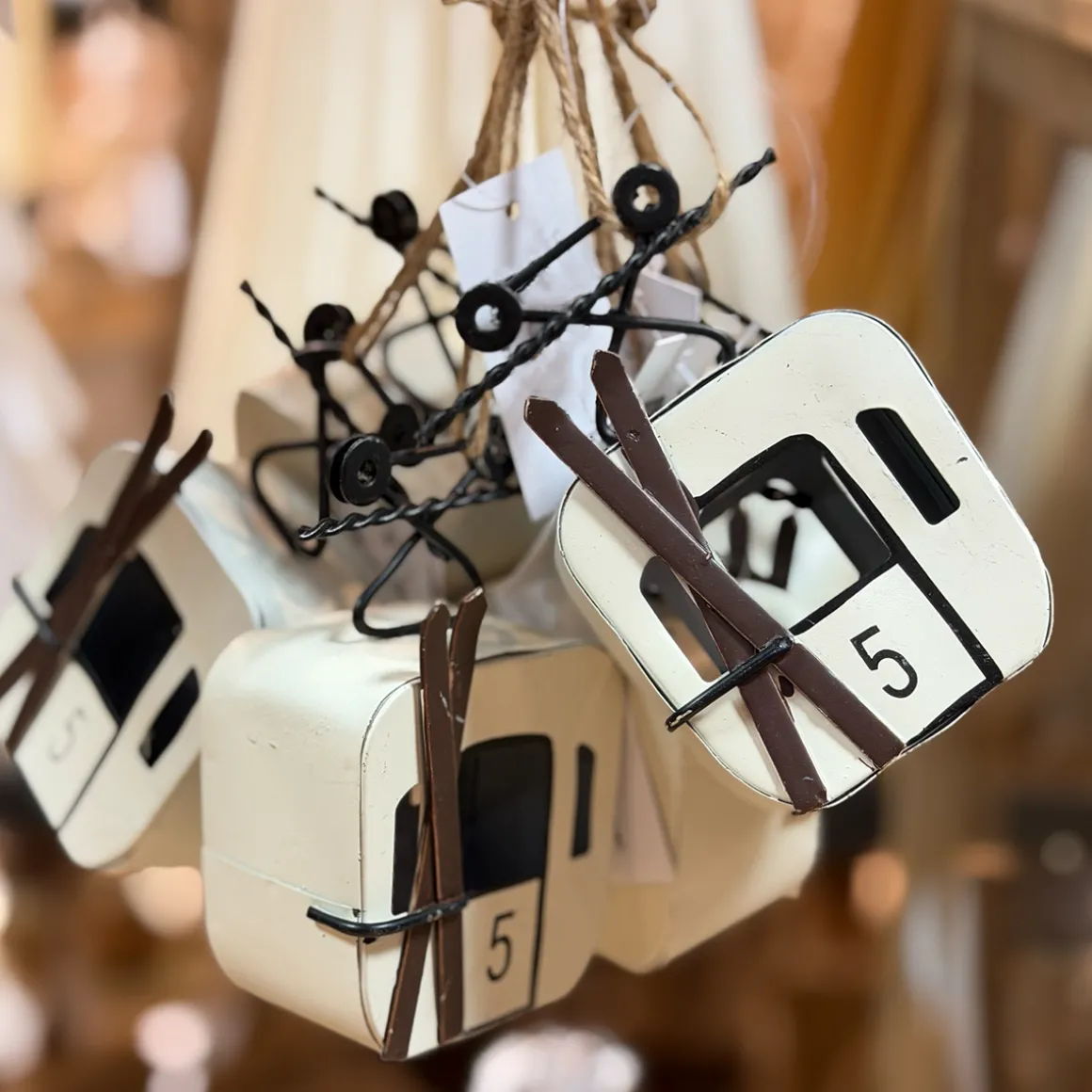 Diese kleine Seilbahn-Gondel aus Metall bringt sofort alpinen Charme in deine Winter- und Weihnachtsdekoration.