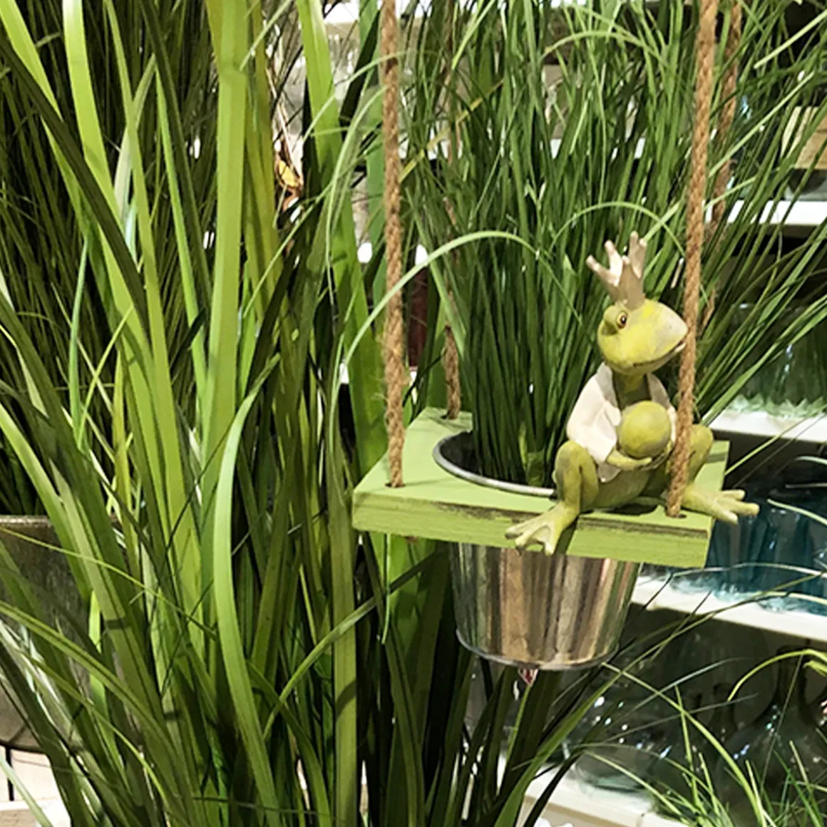 Produktinformationen „Deko Hänge-Ampel, grün, mit 3 Zinktöpfe, 108cm“