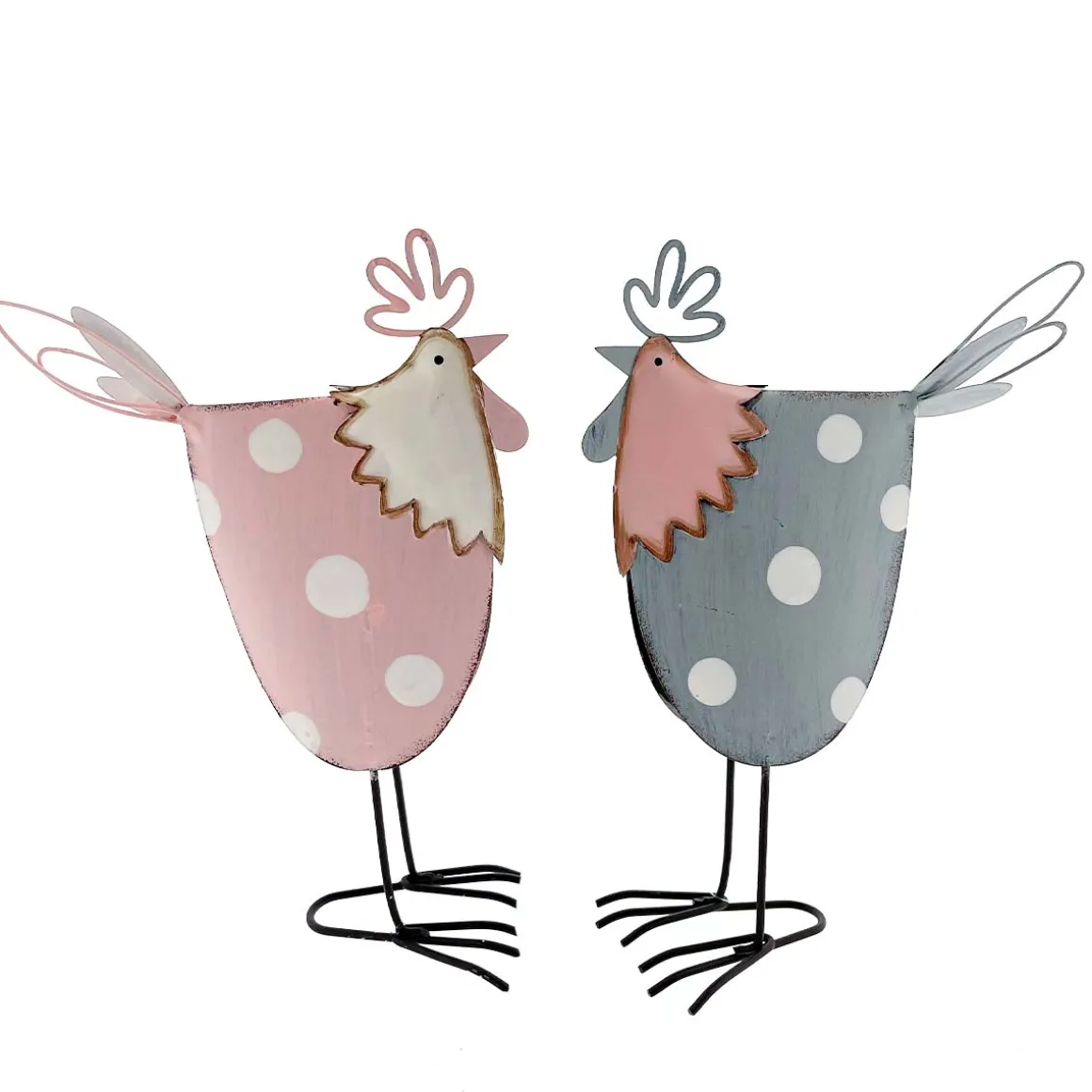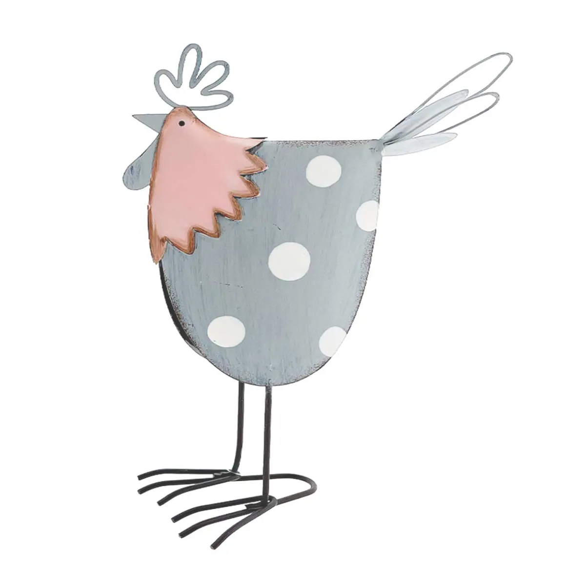 Deko Hahn Ostern, Metallhahn grau mit weißen Punkte, 25cm, Metall