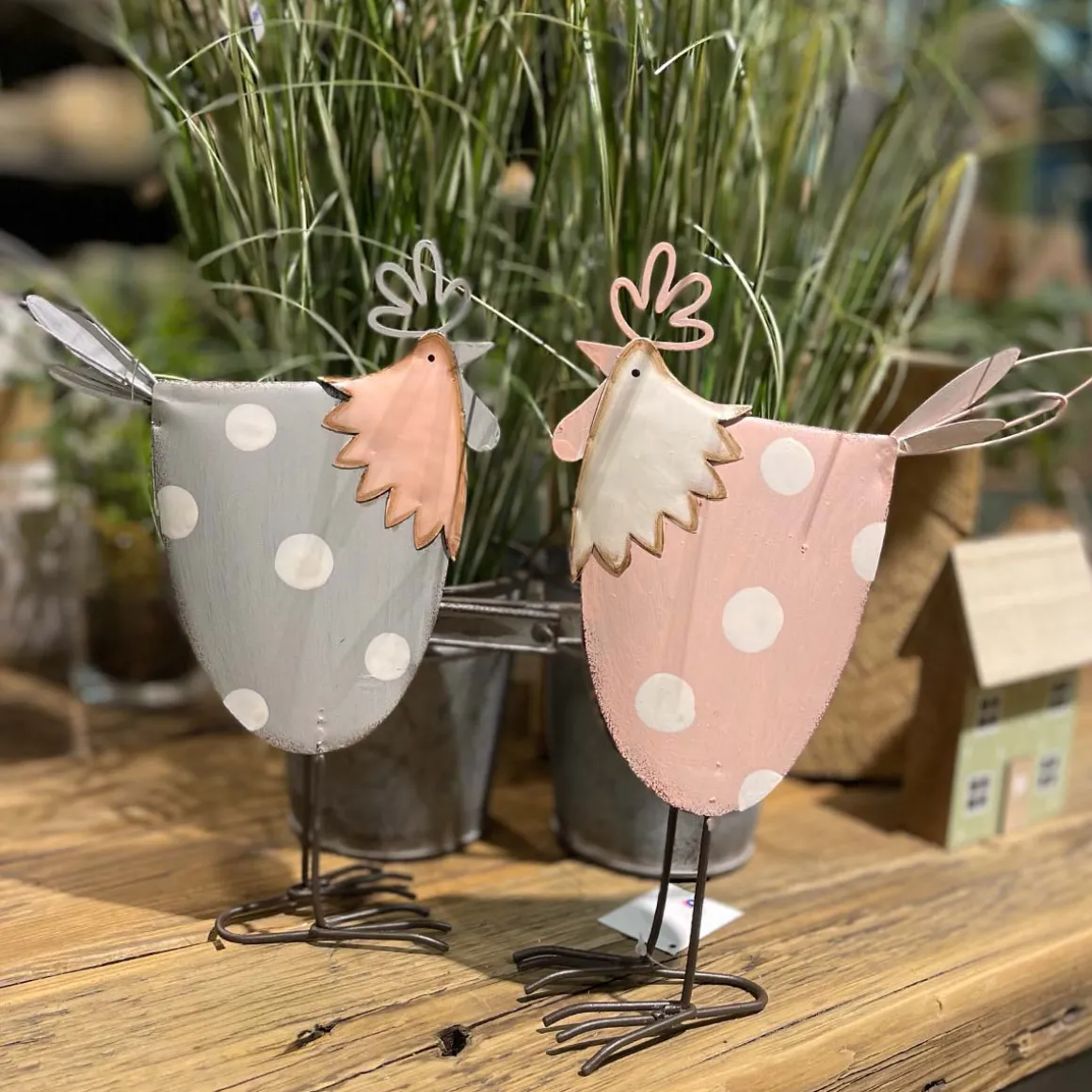 Produktinformationen „Deko Hahn Ostern, Metallhahn grau mit weißen Punkte, 25cm, Metall“