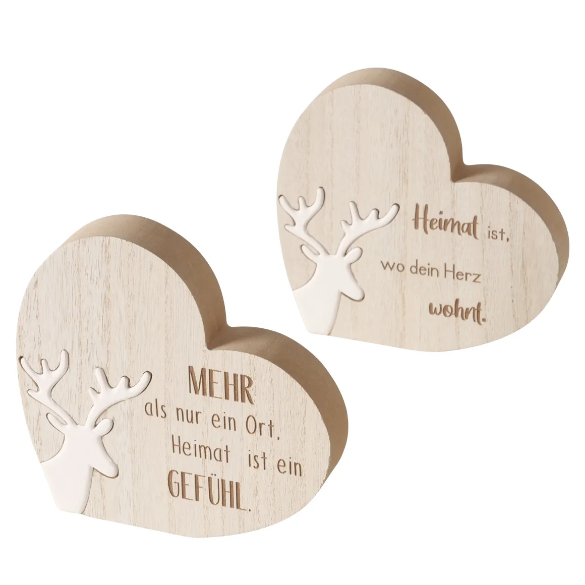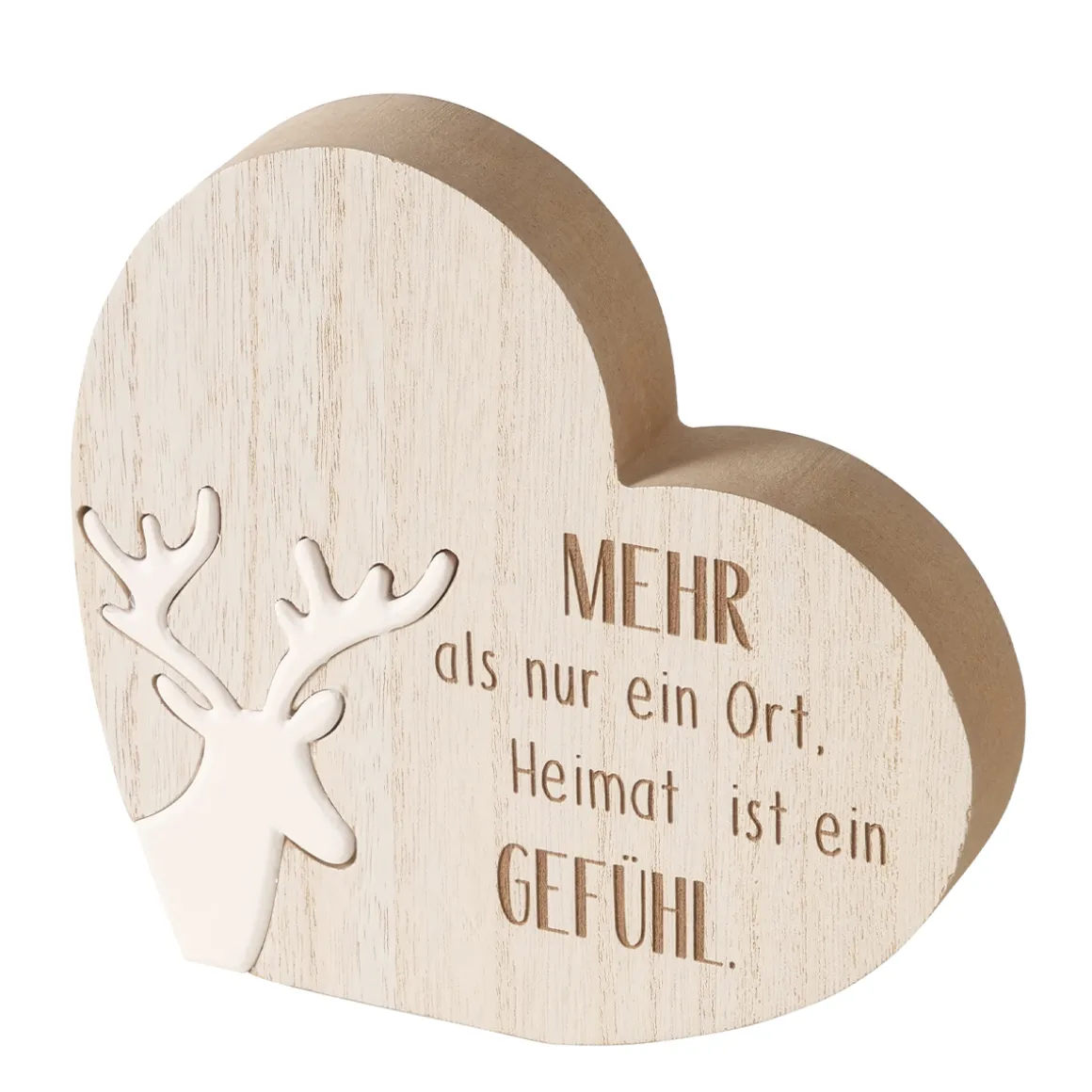 Deko Herz Hirsch, Holzherz mit Hirsch und Spruch: Mehr als nur ein Ort…, 16x15cm, Boltze Home Collections