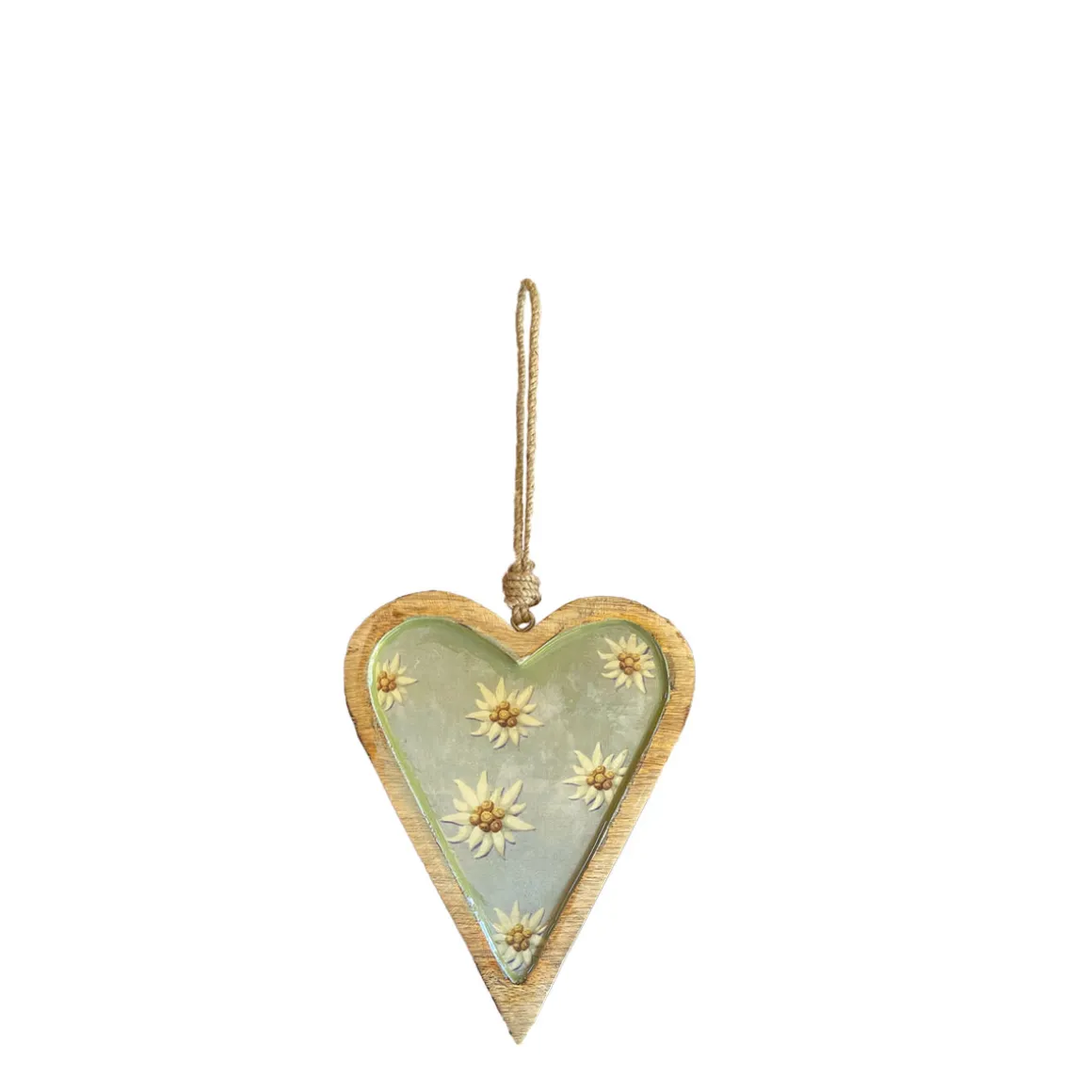 Deko Herz Landhaus, Holzherz blaugrau mit Edelweiß, Emailleoptik, 7x10cm, Hänger