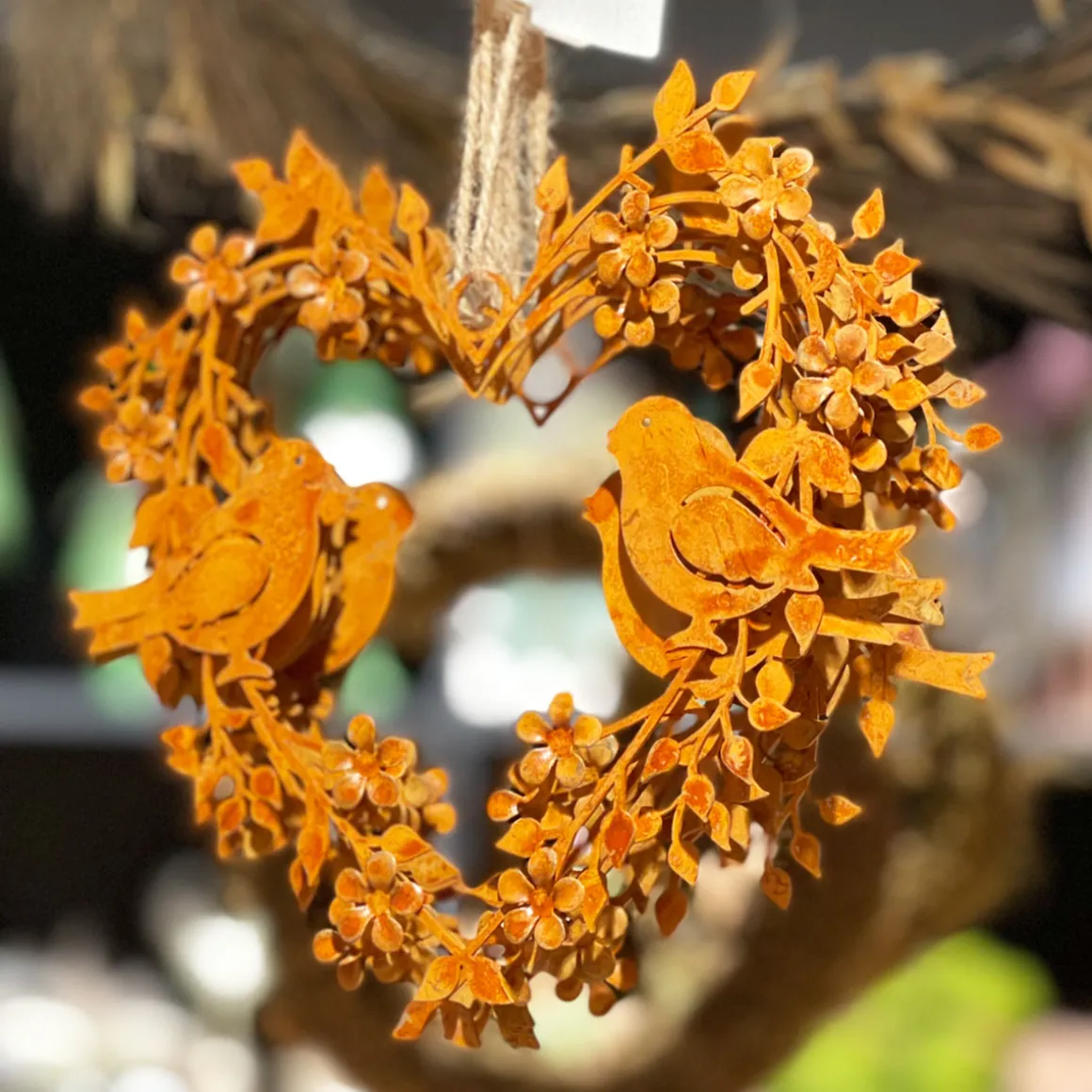 Deko Herz mit Vögel, Rostherz mit Blumen und Vögel, 20x18cm, Edelrost, Hänger