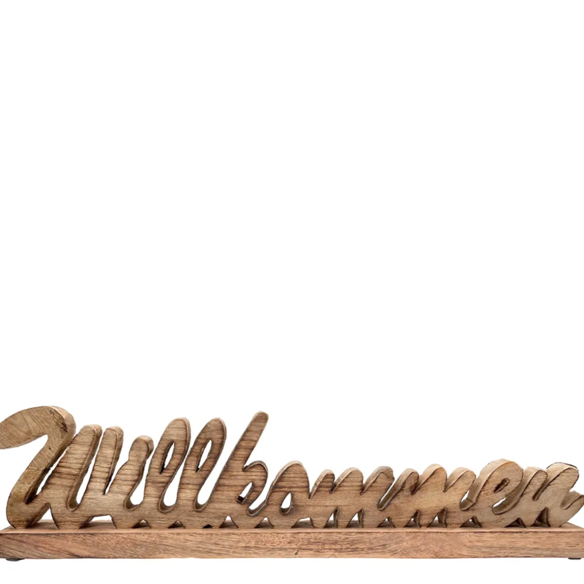 Produktinformationen „Deko Holzaufsteller Willkommen, Schriftzug Willkommen auf Holzsockel, 48x12cm“