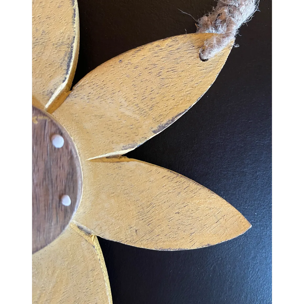 Produktinformationen „Deko Holzblume gelb mit Punkte, Sonnenblume aus Holz zum Hängen, beidseitige Holzblüte“