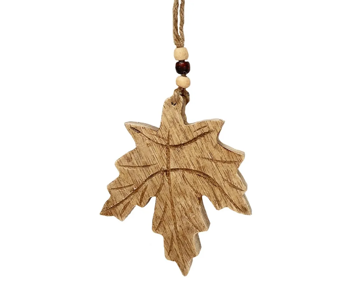 Deko Holzhänger Ahornblatt, Mangoholz natur, 9×12 cm