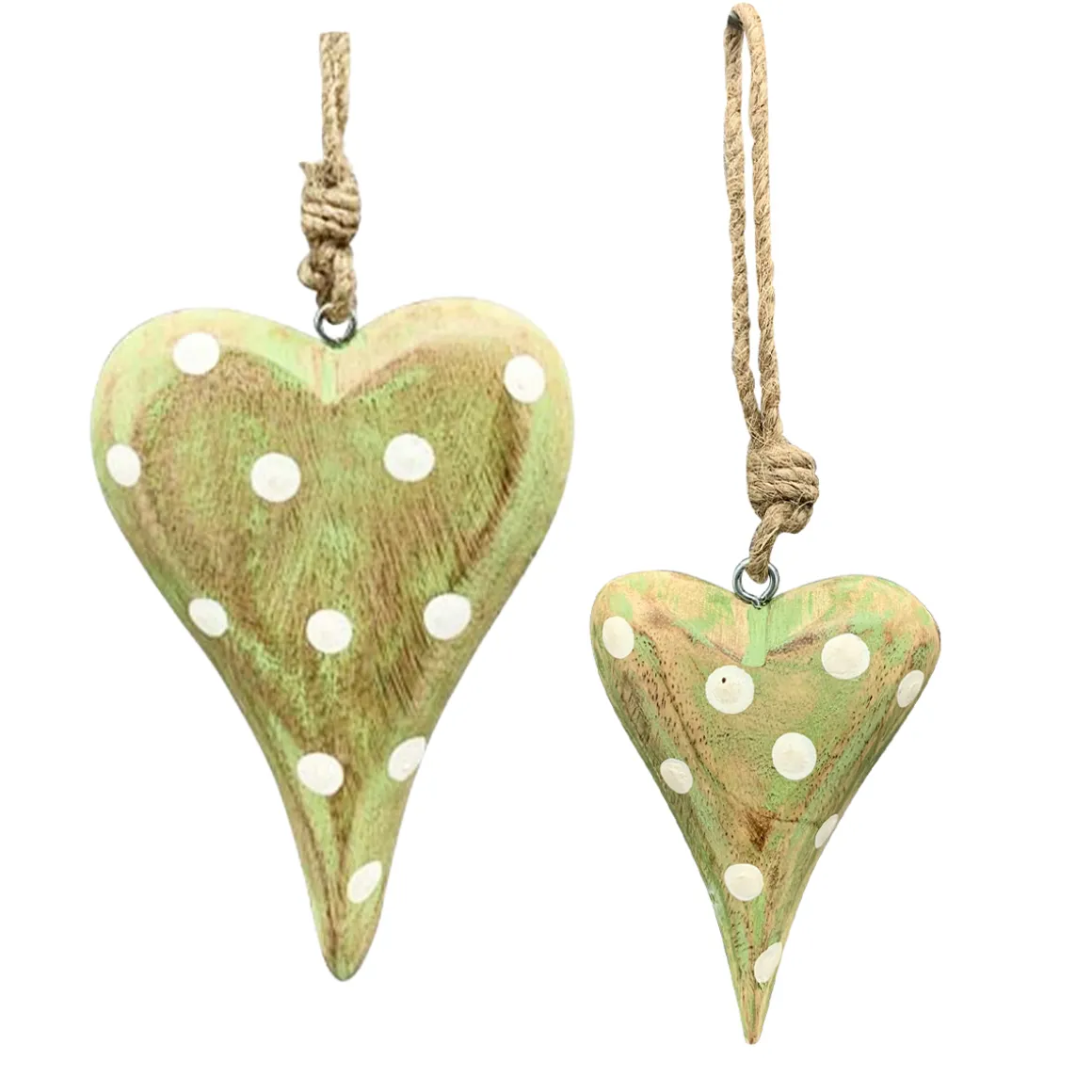 Deko Holzherz grün used look, Herz gepunktet, hellgrün-weiß, 7x9cm, Holzhänger