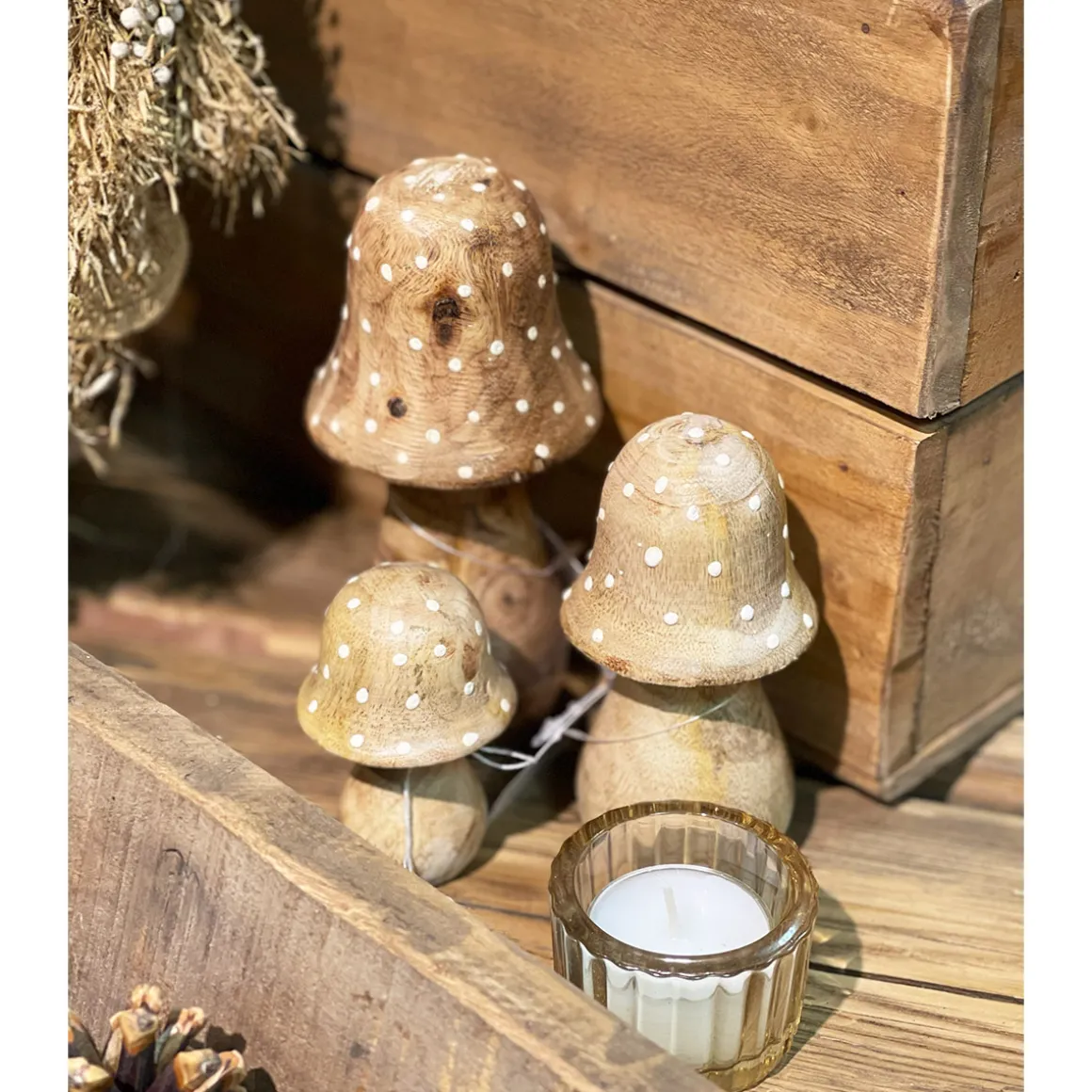 Deko Holzpilz, Fliegenpilz natur, schmale Kappe, 11x6cm