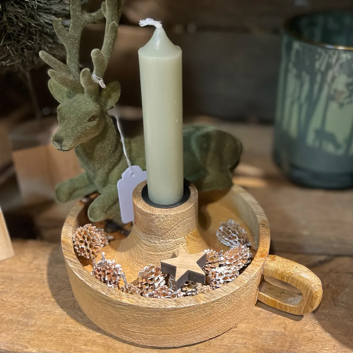 Produktinformationen „Deko Kerzenhalter Kammerleuchte, Holzschale mit Henkel, Ø16cm, Naturholz“