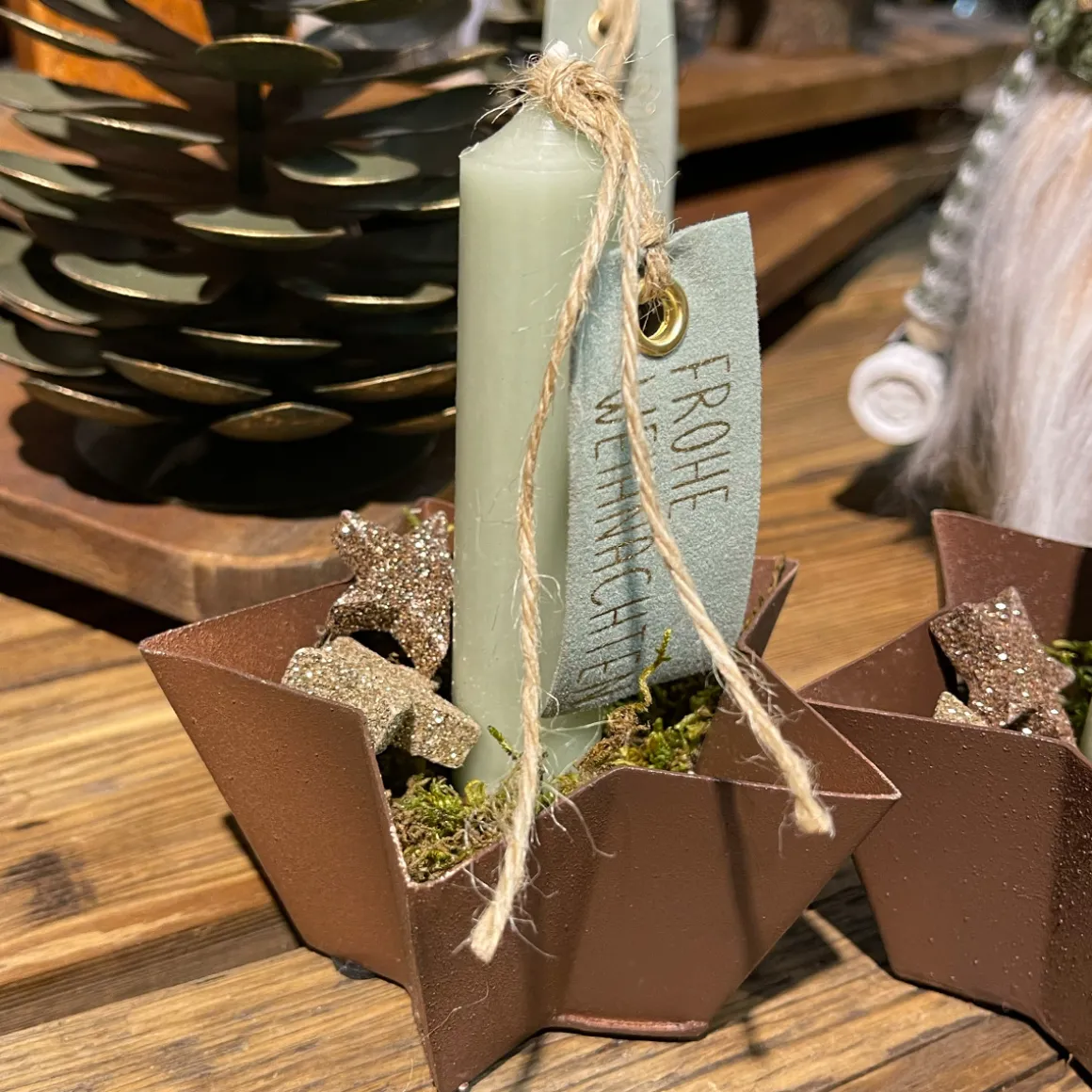 Deko Kerzenhalter Stern, Kerzenhalterschale für Stabkezen, dunkelbraun 14x6cm, Metall