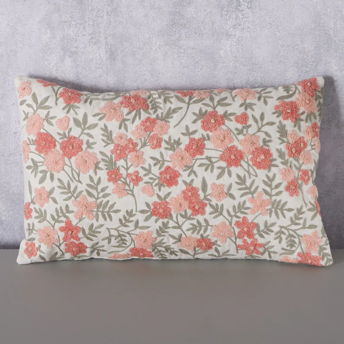 Deko Kissen Lomna mit getickten Blumen, Baumwollkissen Blumen in rose, 50x30cm, Boltze Home Collections