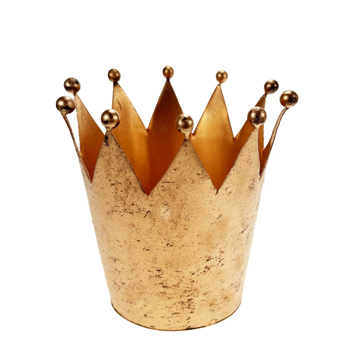 Deko Krone Antik gold, Windlicht Metallkrone gold – used look, Pflanzgefäß, 11cm