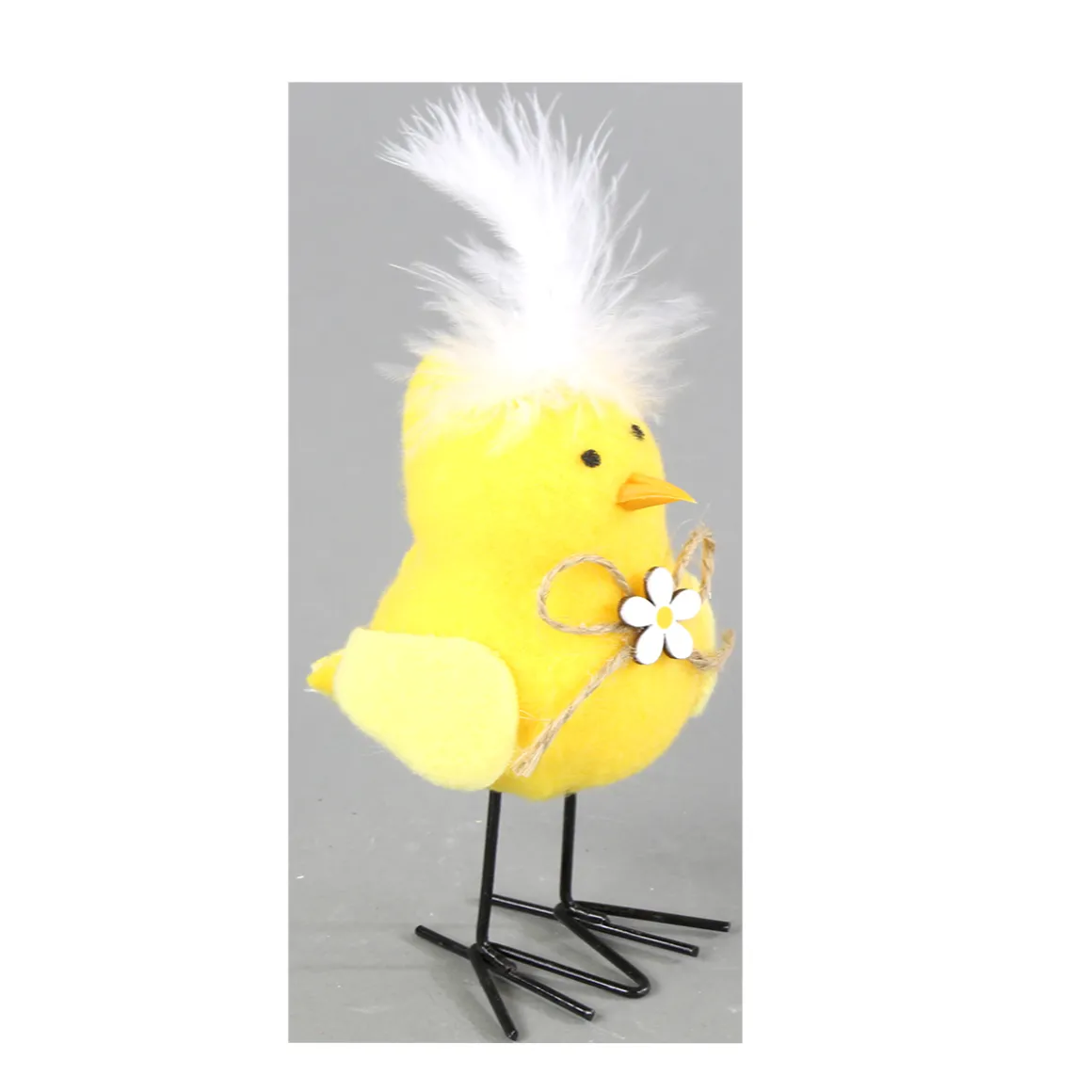 Produktinformationen „Deko Küken, kleines gelbes Plüschküken mit Blume und Feder, 7x13cm“