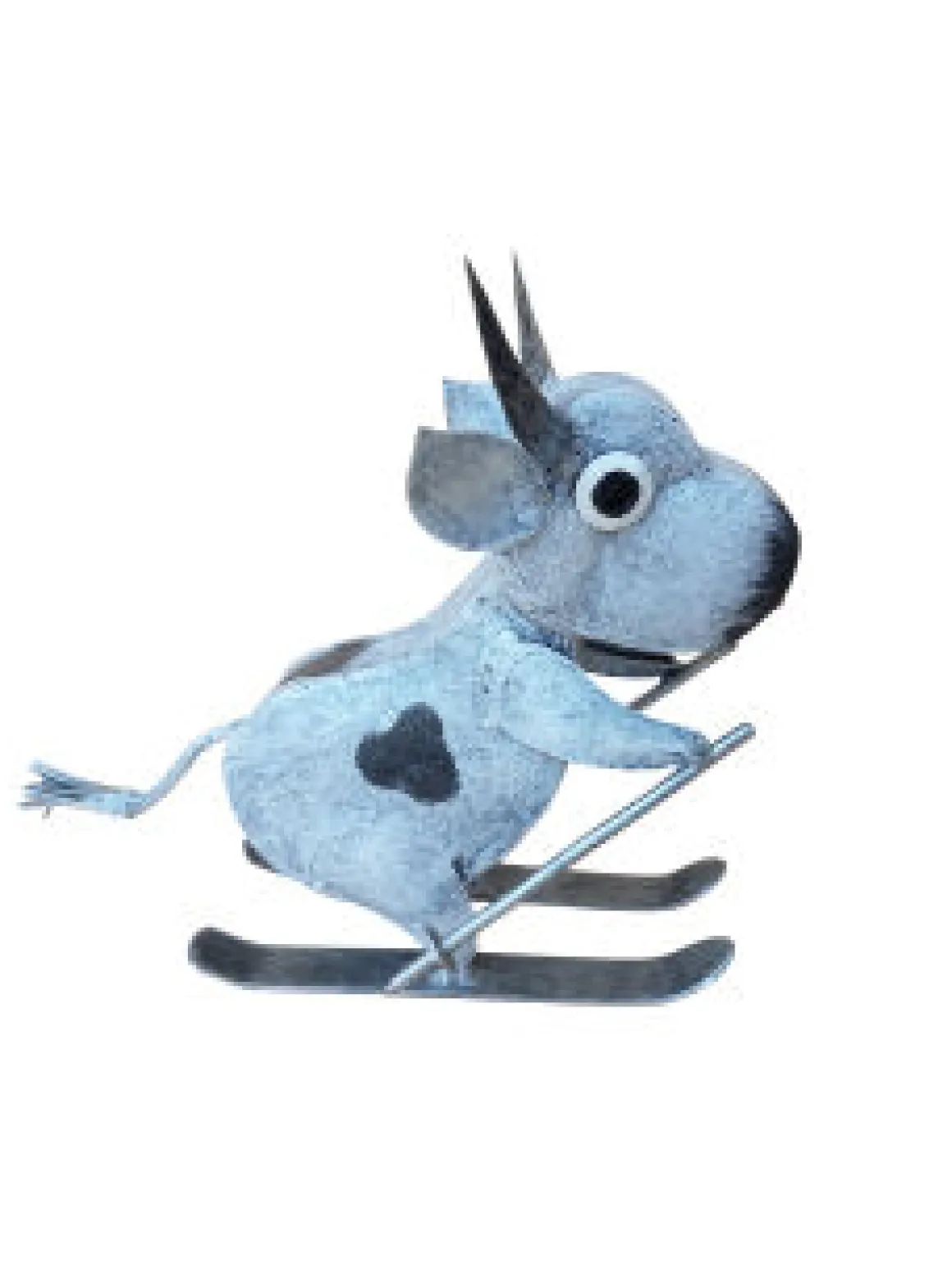 Deko Kuh, Metallkuh auf Ski, schwarz-weiß, 26x28cm, Medusa