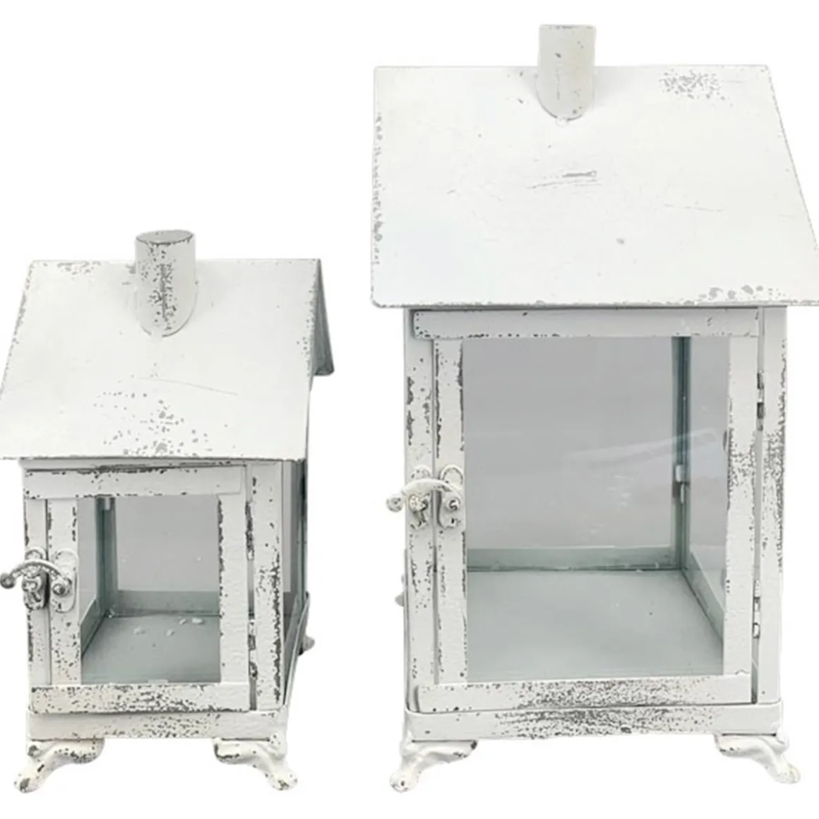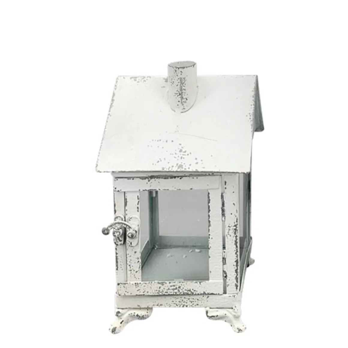 Produktinformationen „Deko Laterne Haus weiß used look, Metallwindlicht Haus Shabby Chic, 18x35cm“