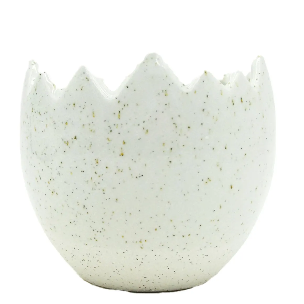 Deko Pflanzei weiß, Keramikei oben offen, 11cm