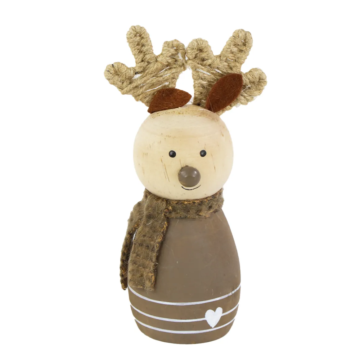 Deko Rentier, Rentier aus Holz mit Schal, braun, 15cm, Naturholz
