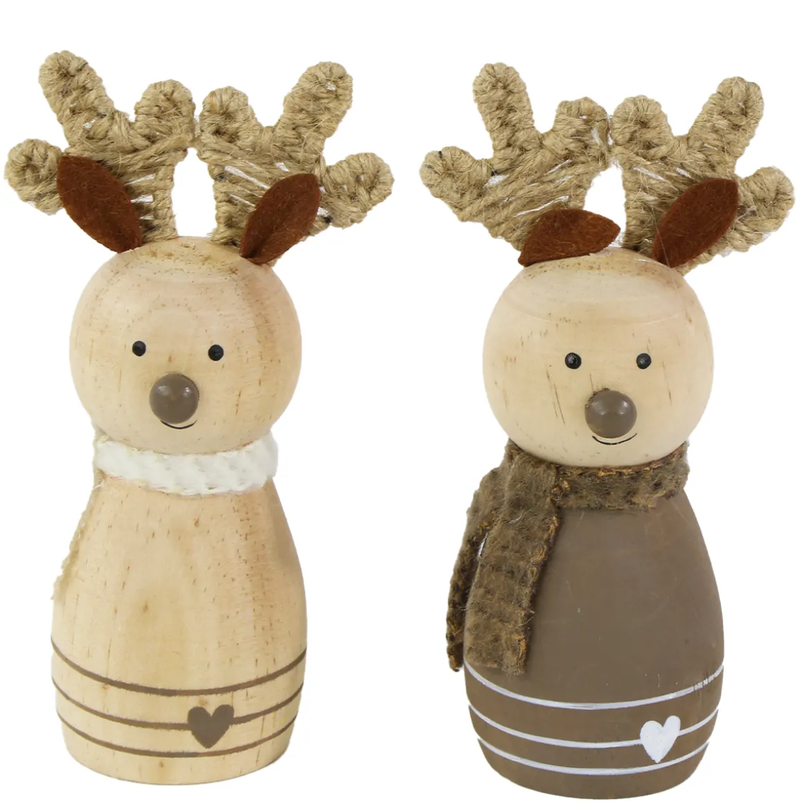 Deko Rentier, Rentier aus Holz mit Schal, natur, 15cm, Naturholz