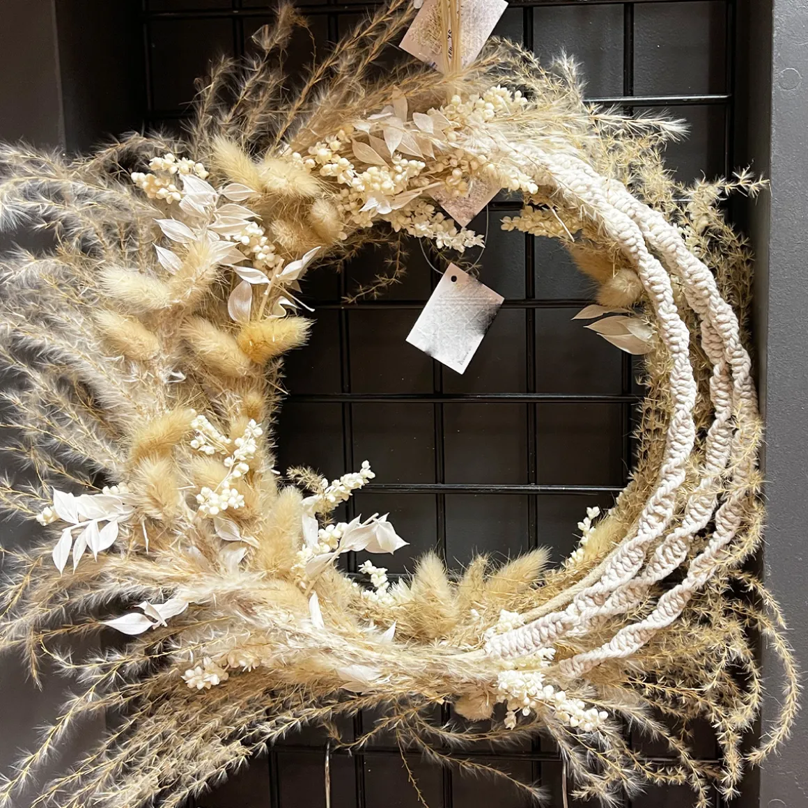 Deko Ring Blumenkranz Boho, Makrameering mit Trockenblumen, creme-natur, Ø30cm