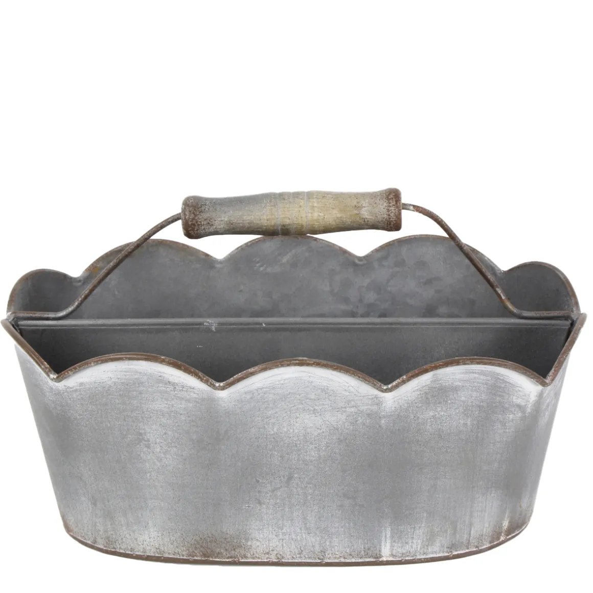 Deko Schale mit Henkel, gewellter Rand, grau used look, oval, 27x17cm, Metall