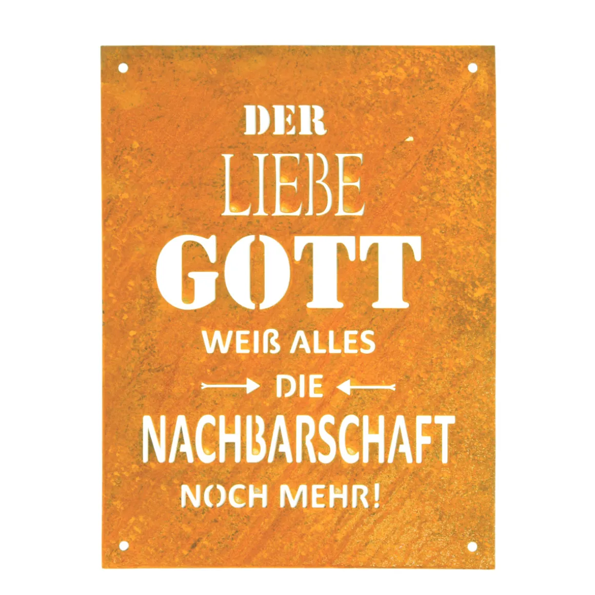 Deko Schild Gott weiß alles, Rostschild mit Spruch, 26x35cm, Edelrost, Gerrys Garden