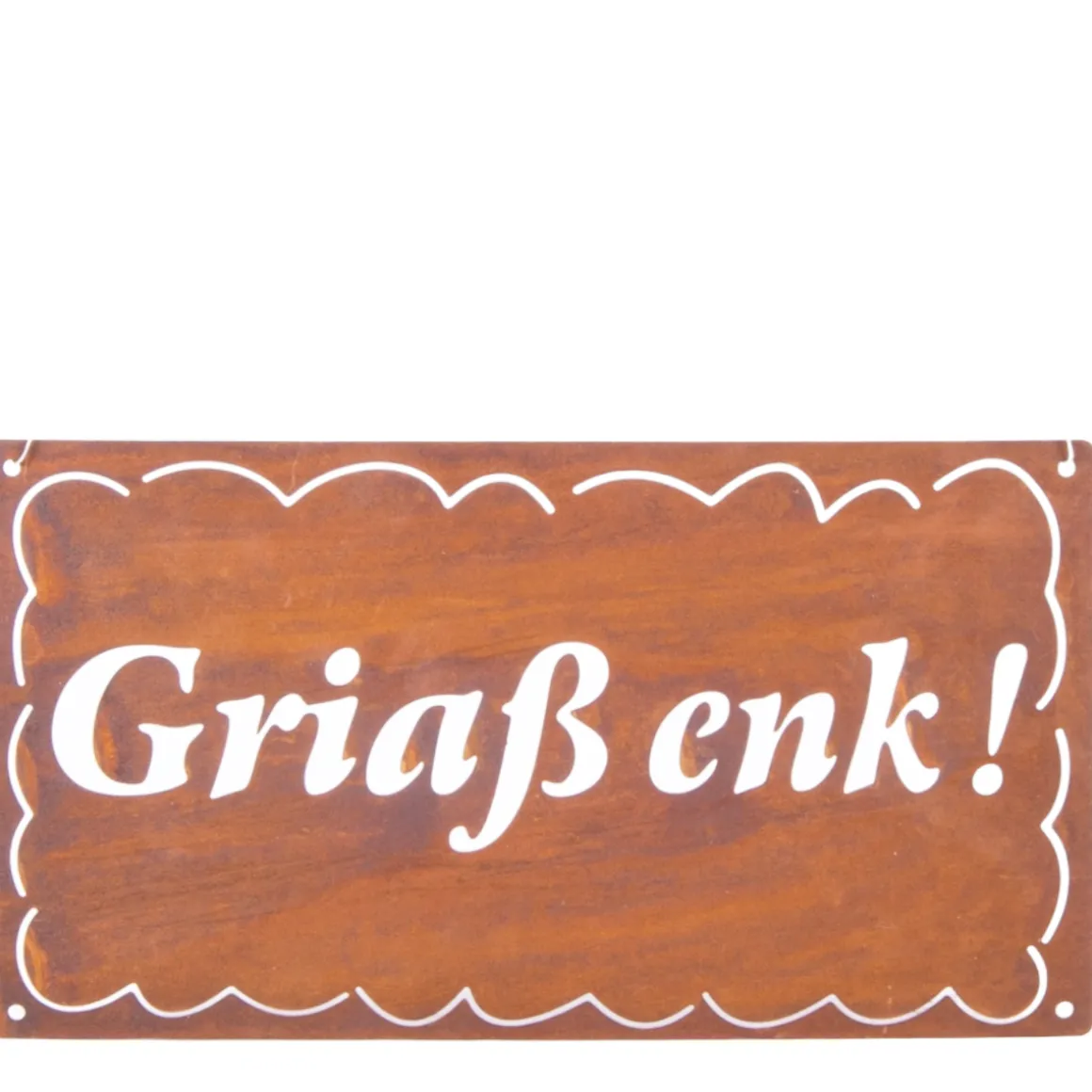 Deko Schild Griaß enk, Rostschild alpenländisch: Griaß enk! 30x17cm, Edelrost, Gerrys Garden