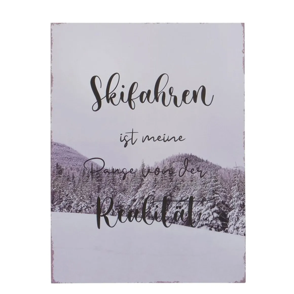 Deko Schild Skifahren used look, Metallschild: Skifahren ist meine Pause…, 40x30cm, Boltze Home Collections