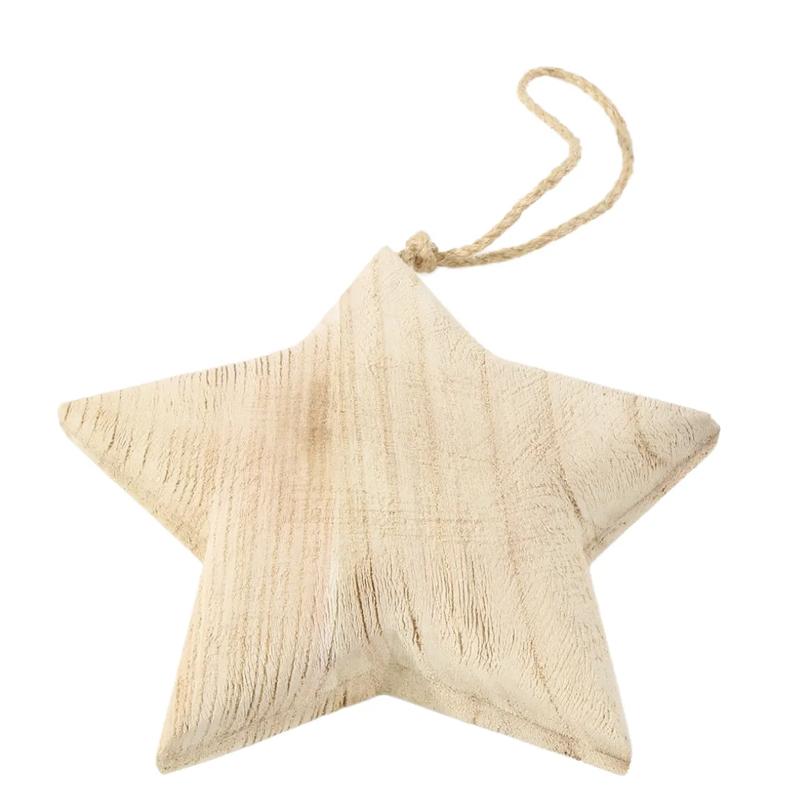 Deko Stern Naturholz, Holzstern Natur zum Hänger, 19cm