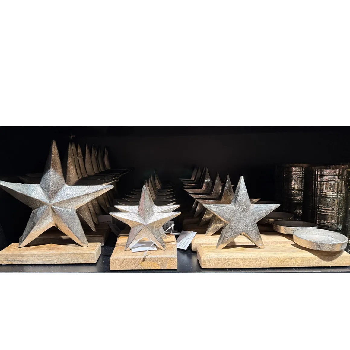 Dieser kleine Metallstern auf massivem Holzsockel bringt genau die richtige Mischung aus rustikalem Charme und winterlicher Gemütlichkeit in dein Zuhause.