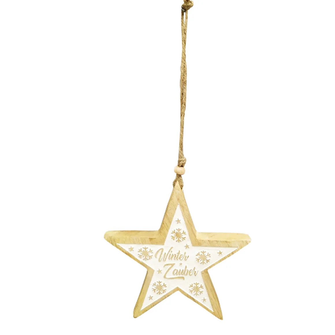 Deko Stern Winterzauber, Holzstern mit Spruch, natur-weiß, 15x15cm, Hänger