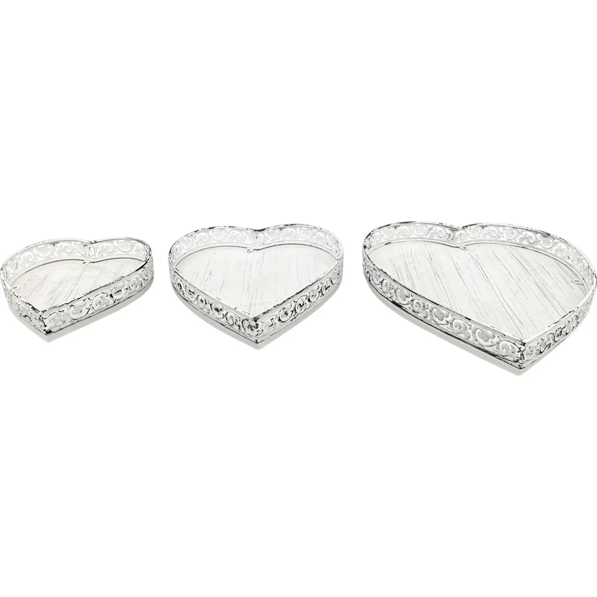 Deko Tablett Herz weiß, Metallschale mit Muster – used look, 25x28x4cm
