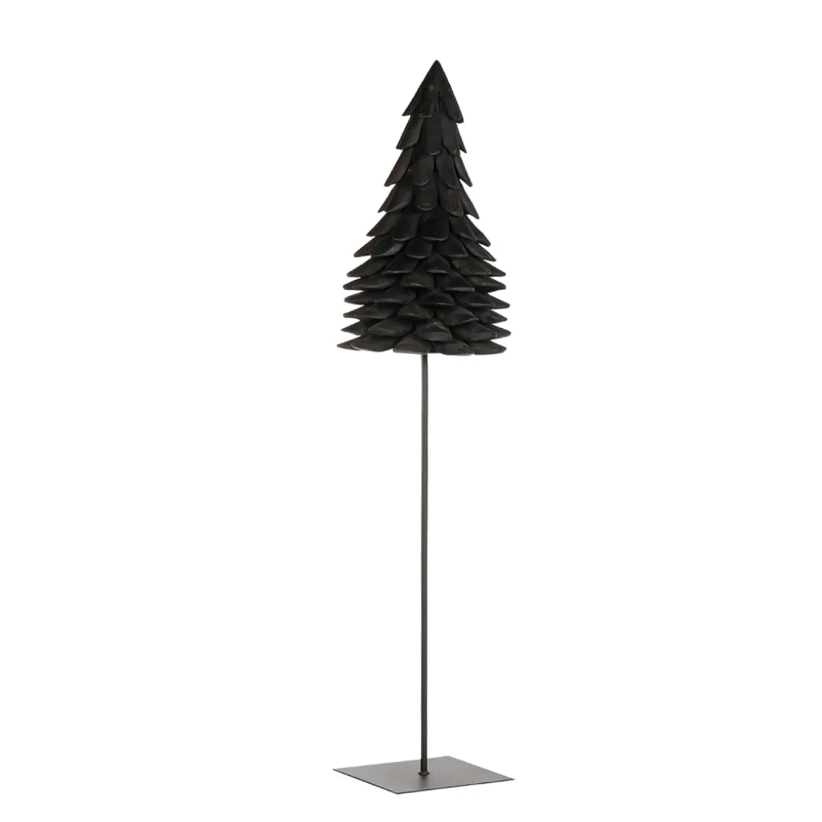 Deko Tannenbaum Teak schwarz, Tanne aus Naturholz auf Eisenständer, 150cm, WMG Grünberger