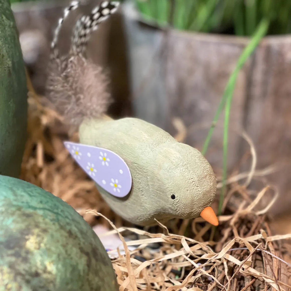 Produktinformationen „Deko Vogel, Holzvogel, grün oder creme, 13x10cm“