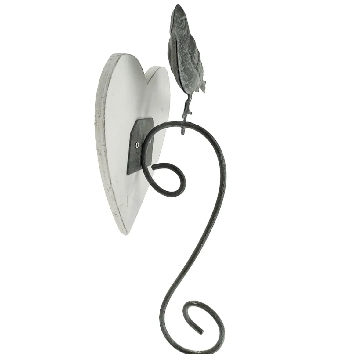 Wandhaken, Garderobe, Herz mit Vogel, grau-weiß- used look, 21x11cm, Metall-Holz