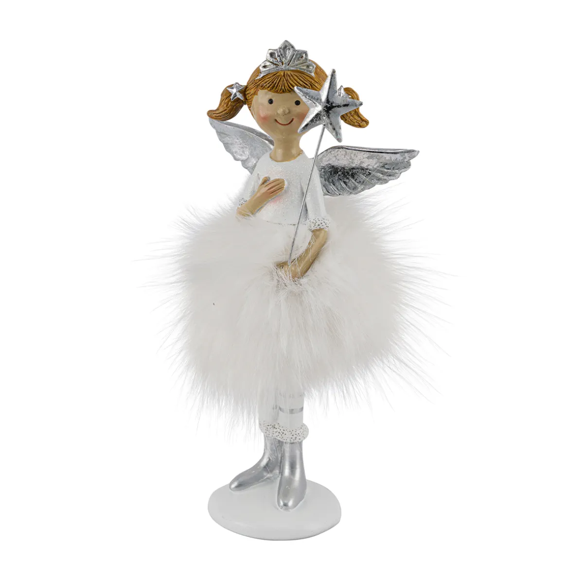Deko Weihnachtsengel, putziger Engel mit Plüschrock, Krone und Sternenzepter, 22cm